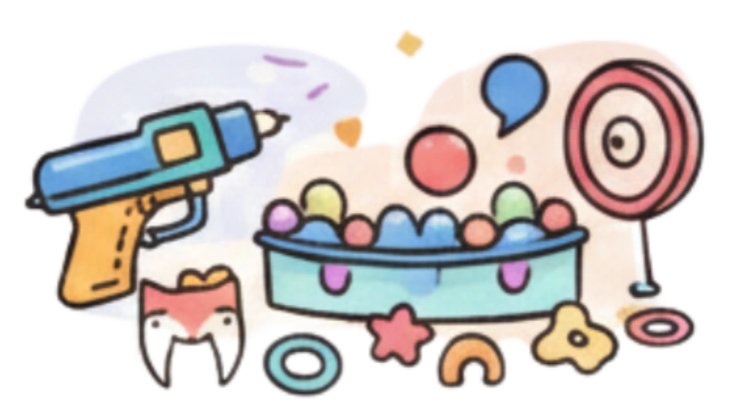 Gun shooting games, ball pits, illuminated LED play zones, fox teeth, and sensory activities that keep kids engaged while encouraging focus, reflexes, and teamwork.